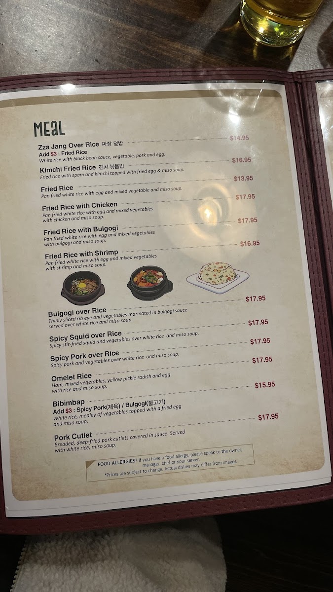 Popular dishes such as grilled pork belly BBQ, Korean fried chicken combos, and various kimbap rolls bring a familiar taste of Korea with modern twists, ideal for lunch, dinner, or sharing as casual bites. Alongside these, comforting staples like miso soup, kimchi stew, and seafood scallion pancakes add depth and variety suited for any season.